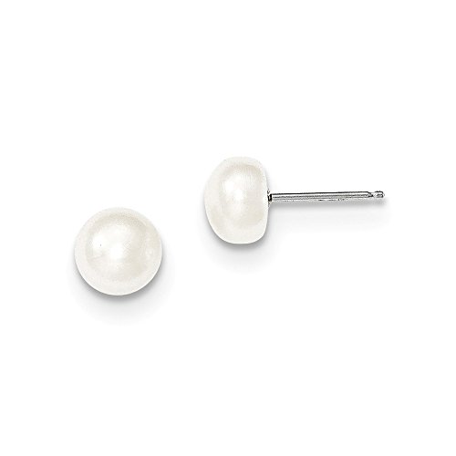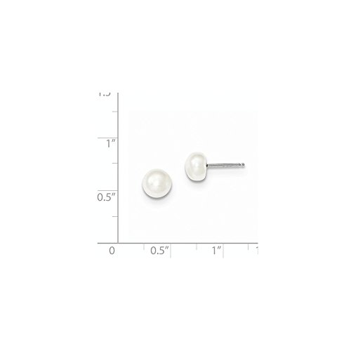 Solid 14k White Gold 6-7mm White Button FW Cultured Pearl Stud Earrings