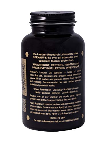 Brand:Obenauf's Item Weight:9.4 ounces Product Dimensions:2.5 x 2.5 x 4.5 inches Item model number:1003 Manufacturer Part Number:1003 Folding:No ASIN:B002Q907QU Customer Reviews:4.8 out of 5 stars 658 customer reviews 4.8 out of 5 stars Best Sellers Rank:#2,987 in Automotive (See top 100) #43 in Automotive > Car Care > Interior Care > Leather Care Shipping Weight:9.6 ounces (View shipping rates and policies) Domestic Shipping:Currently, item can be shipped only within the U.S. and to APO/FPO addresses. For APO/FPO shipments, please check with the manufacturer regarding warranty and support issues. International Shipping:This item is not eligible for international shipping. Learn More Date First Available:June 15, 2010