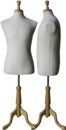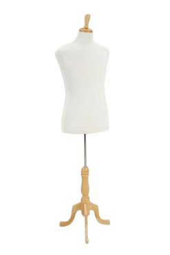 - White Jersey Covered Form on Natural Wood Adjustable Tripod Stand.