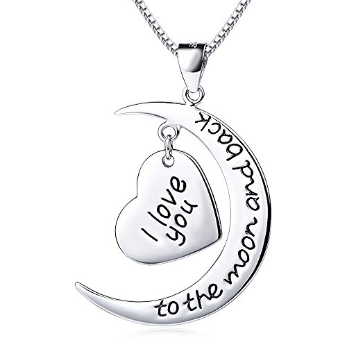 Product Description The Crescent Mom and Heart Engraved the Love Message "I Love you to the Moon and Back" Unisex Men Women Pendant Necklace comes with the 0.8mm Box Chain 18"