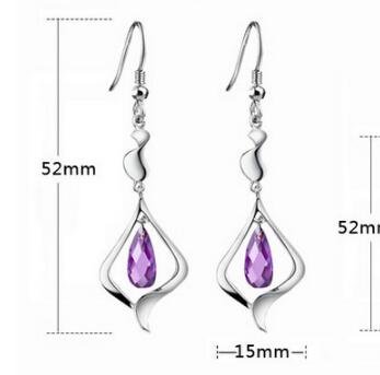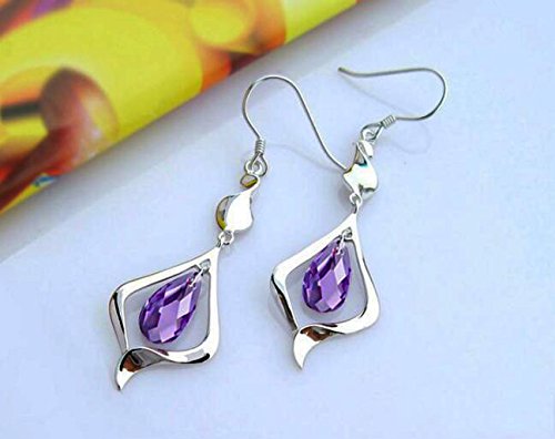 Material:S925 sterling silver with 18k white gold plated for the hooks ,and the body is bronze was plated 18k white gold also, healthy and beauty together.the purple crystal which symbolize mystery,magic,power and luxury is the trend of those years, it make the simple silver colour get more luxury.
