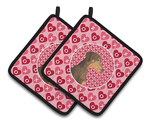 Caroline's Treasures Doberman Hearts Love & Valentine's Day Portrait Pair of Pot Holders SS4479PTHD, 7.5HX7.5W, Multicolor