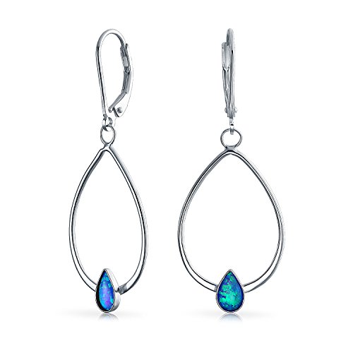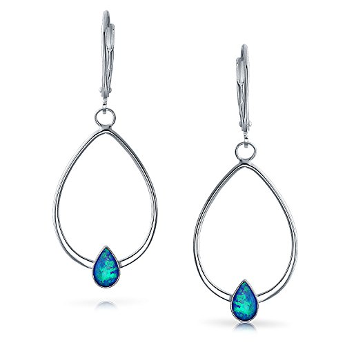 For a modern feel with a dash of color, choose these beautiful sterling silver teardrop dangle earrings. The .925 sterling silver teardrop shaped hoop is highlighted with a synthetic blue opal at the center. These leverback teardrop dangle earrings will give your look an airy, fresh feel exuding elegance.