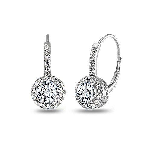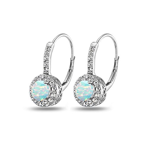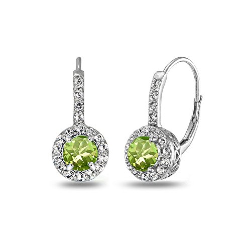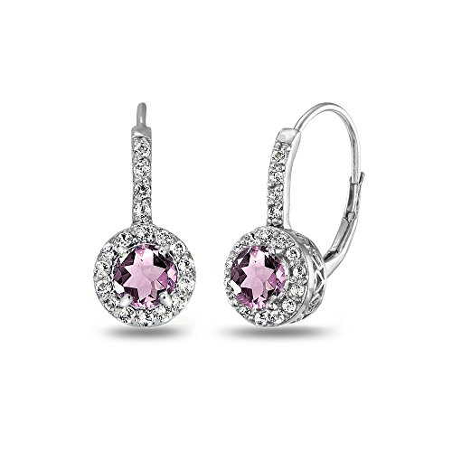 Sterling Silver Genuine, Created and Simulated Gemstone & White Topaz Round Halo Small Dainty Leverback Earrings