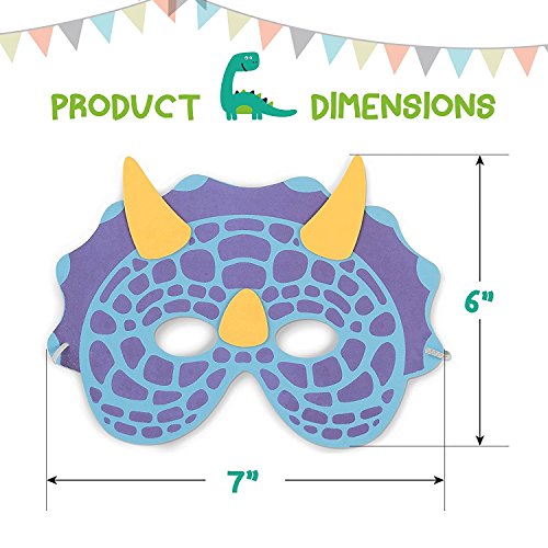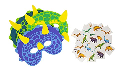 -. Binding : Toy -. Brand : M & M Products Online -. EAN : 0764560094526 -. Feature : ASSORTED PACK OF 24 MASKS: Two dozen masks of various colors and styles. Lots of fun options to choose from / 72 EASY TO APPLY AND REMOVE TEMPORARY TATTOOS: Six dozen included with assorted styles so all the kids get their favorite dinosaur / DINOSAUR PARTY SUPPLIES: The perfect addition to your Dinosaur themed party! / BPA FREE, FLEXIBLE FOAM: Non-toxic, kid-safe mask is 7.5" wide for a comfortable fit / SATISFACTION GUARANTEED: Unhappy with your purchase? Return it for a full and prompt refund -. IsAdultProduct : 0 -. Label : M & M Products Online -. Manufacturer : M & M Products Online -. ProductGroup : Toy -. ProductTypeName : TOYS_AND_GAMES -. Publisher : M & M Products Online -. Studio : M & M Products Online -. Title : Dinosaur Party Supplies: Bundle Set Of 24 Foam Dino Masks and 72 Temporary Tattoos For Kids - Great Value Set For Dinosaur Themed Birthday Parties - M & M Products Online -. UPC : 764560094526