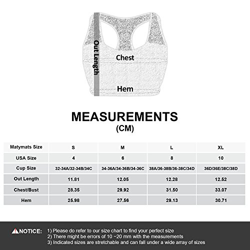 -. Binding : Misc. -. Brand : Matymats -. Department : womens -. Feature : Mesh panels in front and back deliver sexy silhouette and offer maximum breathability to keep neat and comfortable without sticky feel in hot weather / Medium impact racerback sports bra with removable pads for better shape and optional support for yoga, exercise, fitness, any type of workout, or everyday use. / Sexy mesh racerback design gives you freedom of movements and shows your outlined beautiful back curve / Elastic hem help prevents bounce and ride up. Flatlock seams reduce chafing and irritation for comfort fit / Great shape retention for durable use. Wirefree. Complete the look with P.R.Inted yoga caP.R.I pants (ASIN: B079QFT5W9) for a complete the look. An excellent activewear outfits in summer -. IsMemorabilia : 0 -. Label : Matymats -. Manufacturer : Matymats -. ProductGroup : Sports -. ProductTypeName : SPORTING_GOODS -. Publisher : Matymats -. Studio : Matymats -. Title : Matymats Women’s Active Yoga Sports Bra with Removable Pads Medium Impact Workout Racerback Bra Tops