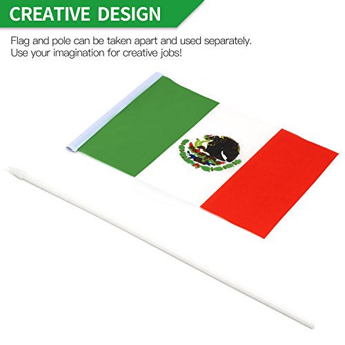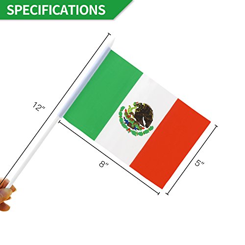 -. Title : Anley Mexico Stick Flag, Mexican 5x8 inch HandHeld Mini Flag With 12" White Solid Pole - Vivid Color and Fade Resistant - 5 x 8 inch Hand Held Stick Flags With Spear Top (1 Dozen)