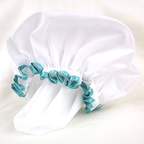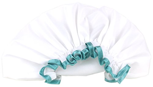 mikimini Waterproof Mold Resistant Washable Shower Cap for Girls and Women Cute and Soft White