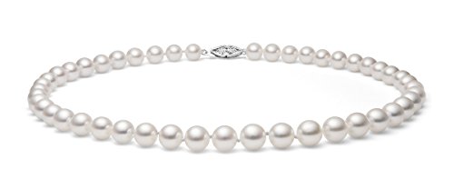 This elegant white freshwater cultured pearl necklace makes a lovely gift for any occasion. It is knotted in-between each cultured pearl and finished with a beautiful 14k white gold clasp. These cultured pearls are extra fine AAA quality, with high luster and clean surface. This jewelry is hand made by our skilled jewelers in USA and quality controlled strictly by our cultured pearl experts. It comes with a high quality jewelry box and a certificate of authenticity.