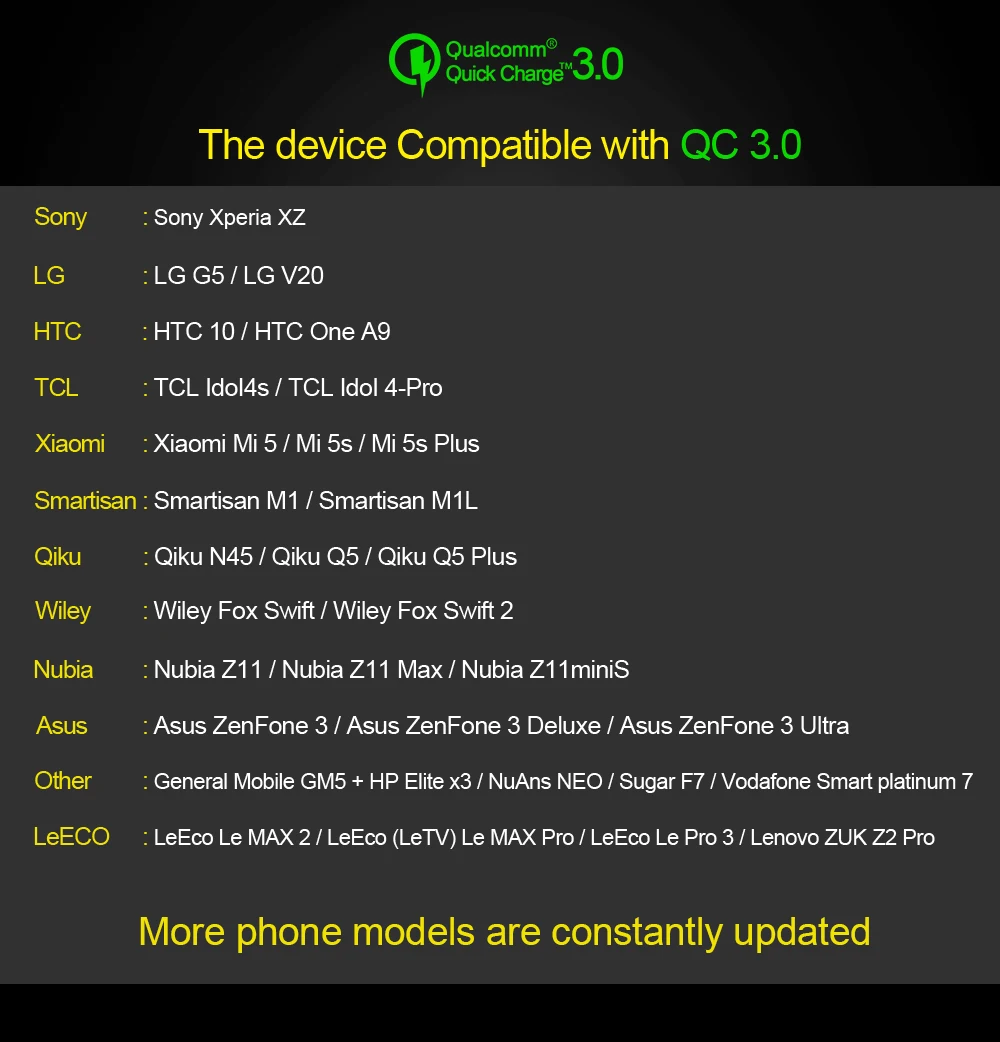 Support Quick Charge Technology:Qualcomm Quick Charge 3.0,Qualcomm Quick Charge 2.0