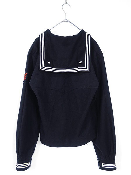 Ladies ブランドNAVAL CLOTHING DEPOT カラー濃紺 メール便不可 コンディション★★★ モデル- 素材ウール100% 表記サイズ42L スタッフコメント60年代、ヴィンテージセーラーシャツ。ウール製のプルオーバーデザイン。セーラーの☆マークがとても可愛いです。星刺しゅう、白ライン全体に変色があります 実寸サイズ 着丈 64 cm 身幅 55 cm 肩幅 47 cm 袖丈 68 cm ※ウエスト・ヒップ以外は平置き採寸