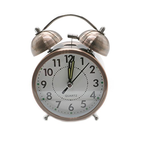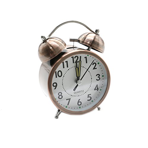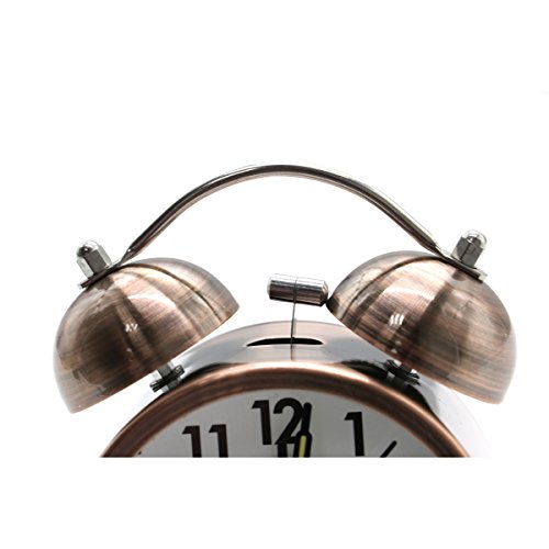 Studio : HU HL Publisher : HU HL Binding : Kitchen Product Description Color:Copper Material:Metal Size:11.5 x 9 x 5cm / 4.52 x 3.54 x 1.96 inch Powered by 1 AA battery (NOT INCLUDED) Metal bell alarm clock, super loud,very suitable for people who snooze. Easy to operate, unique night light switch design, simply press the back button, can see time. Package included: 1 x?Alarm Clock (No Battery) 0