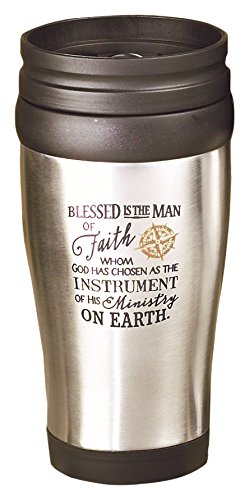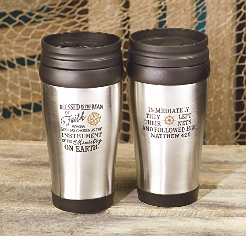 Taken from Jeremiah 17: 7, "blessed is the man who trusts in the Lord." travel mug is a great gift for the follower in your life. Mug is stainless steel and holds 16 oz. Double wall insulation allows drink to stay at perfect temperature. Comes with a spill prevention screw-on lid. Also has a slide-lock lid mechanism! hand wash, do not microwave. Bpa freeFeature