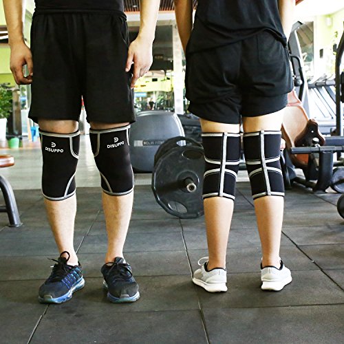 -. Title : Knee Sleeves (1 pair), 7mm Thick Neoprene Compression wraps Knee Braces for Weightlifting, Cross Training, CrossFit, Powerlifting, Bodybuilding, Squats, Gym, Fit Men and Women by DISUPPO