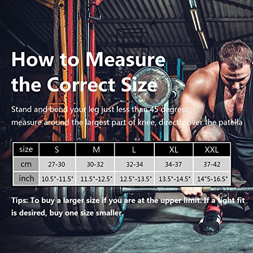 -. Feature : PROFESSIONAL GYM KNEE SLEEVES: Provide perfectly supported, allowing you to enhance your physical function. Reduce the strain on knee during Powerlifting, CrossFit, Cross Training WOD, Squats, Gym Workout, Weightlifting, Heavy Fitness, help you regain knee control. / BID FAREWELL TO INFERIOR PRODUCTS: Carefully crafted with premium quality 7mm neoprene and wear resistant mesh cloth. Comprehensively enhance product quality, optimal breathability and comfort!! / ANATOMICAL SHAPE makes the compression much more even throughout the whole knee.Compression is Proven to promote muscle recovery & injury prevention. The most Wear-resistant neoprene and unique reinforcement technology to prevent damage. / EXTRA STABILITY & SUPPORT: Relieving muscle stiffness and soreness, used for muscle & joint health and as part of rehabilitation processes. Holds the patella in proper position. Relieving muscle stiffness and soreness, used for muscle & joint health and as part of rehabilitation processes. / Please CHECK THE SIZING CHART (Refer to the 3nd image to find your correct size) before placing your order. We promised refunds without reason for 90 days! If you have any problem about product . Simply reach out to us via an Amazon message.