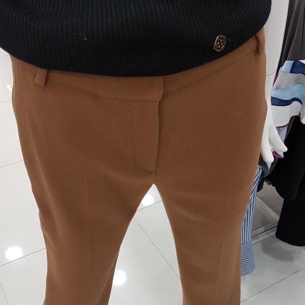밑단트임에 살짝부츠컷핏 슬랙스네요이쁜카멜컬러에 세련하구용신축성있어 착용감도 편해요하체통통인 제가~~ㅎㅎ날씬해보이고 좋아용데일리로 활용좋으실듯합니다