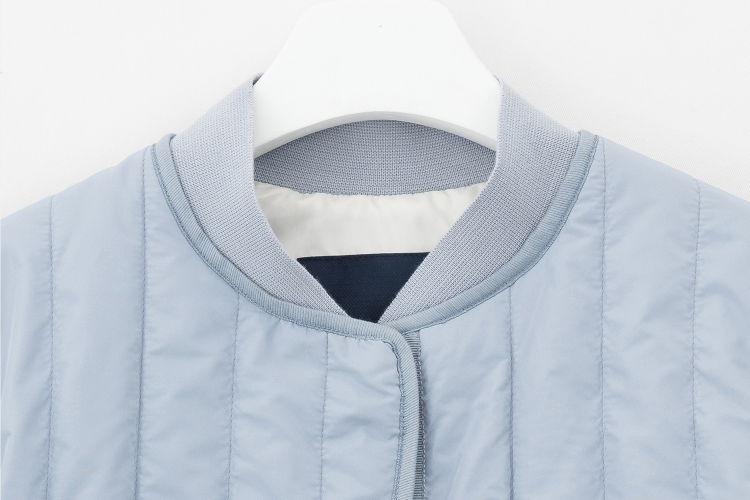 - 세로 퀼팅 충전이 더해진 경량 점퍼로 A라인 실루엣에 스타디움 네크라인으로 가볍고 귀엽게 연출 가능한 아우터입니다.