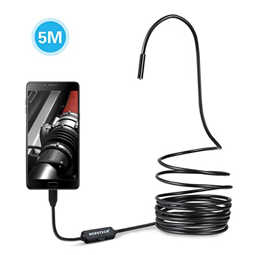 Depstech USB Endoscope, Semi-rigid Borescope Inspection Camera, Waterproof Snake Camera with 6 Adjustable Led for Android, Windows & Macbook OS Computer- 16.4 ft(5M)