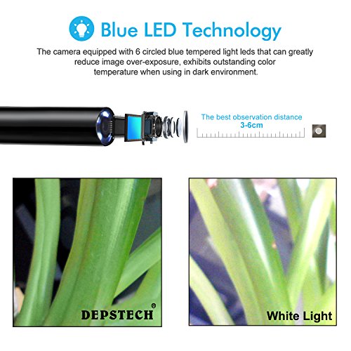 Unique Blue LED technology,6 adjustable blue LED light on camera tip, it greatly helps to improve image brightness and clarity even in dark or low-light condition.