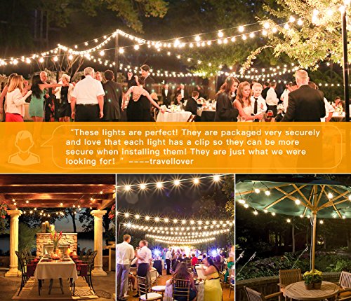 - G40 Globe String Lights (Candelabra Screw Base E12) ,- ideal for indoor / outdoor applications,best decoration for an outdoor party, create an a warm amber glow for yany Garden Party, Dance, or Wedding! Fantastic light effect could increase the festive atmosphere.