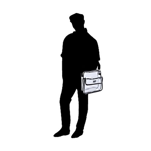 Deluxe ALL Clear Cross-Body Messenger Bag is perfect for football games, NASCAR, work, travel or high security areas! This messenger bag is adjustable so it can be worn cross-body or as a shoulder bag. Features a front velcro pocket, adjustable shoulder strap, and sturdy main zipper compartment. - Shoulder strap adjusts from 52 inches to 29 inches - Bag measures 8.75" H x 8.75" W x 4" D, Front pocket measures 8"x 5.25".Feature