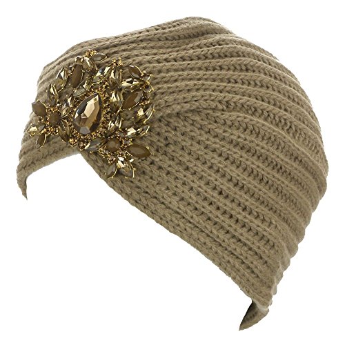 -. Title : Women's Knit Jewel Accent Ribbed Beanie Turban