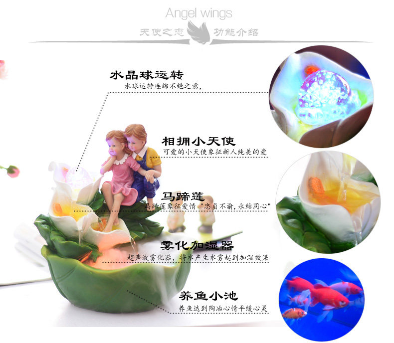 水景水循环流动可以净化空气、加湿除尘、释放大量的氧分子,无噪音和无溅水现象,自然水循环,吸附空气当中的飘尘,细菌、细小纤维,有效驱除二手烟,甲醛、一氧化碳等有害物质和异味,能切断所有家用电器所产生的有害电磁波,不仅净化室内空气,且释放大量氧分子,就似把一座森林搬回家。