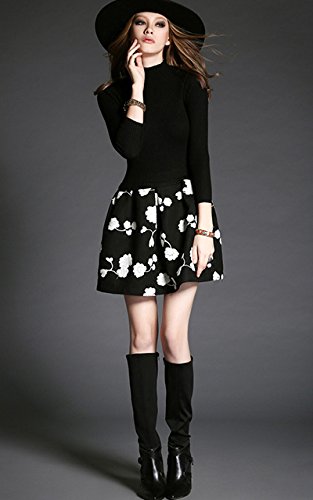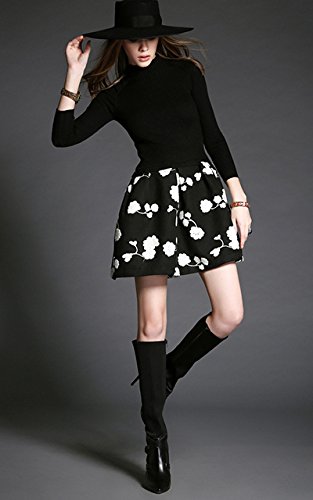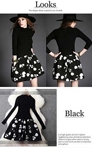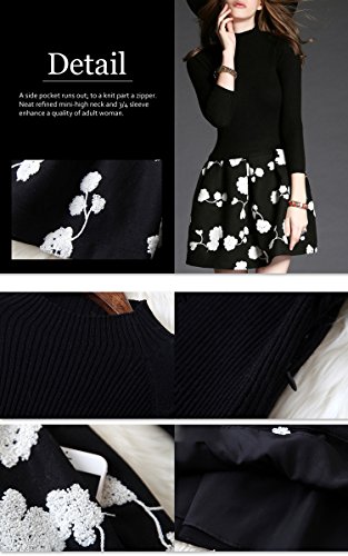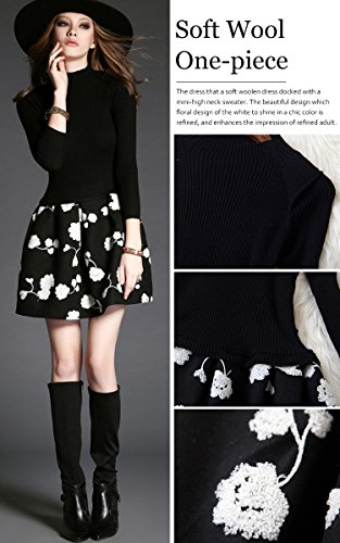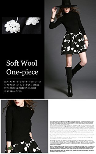 -. Title : (a la mode)アラモード 大人 エレガント 高級 ウール モックネック ニット セーター フレア 花柄 スカート ドッキングワンピース レディース ドレス お呼ばれ lan10