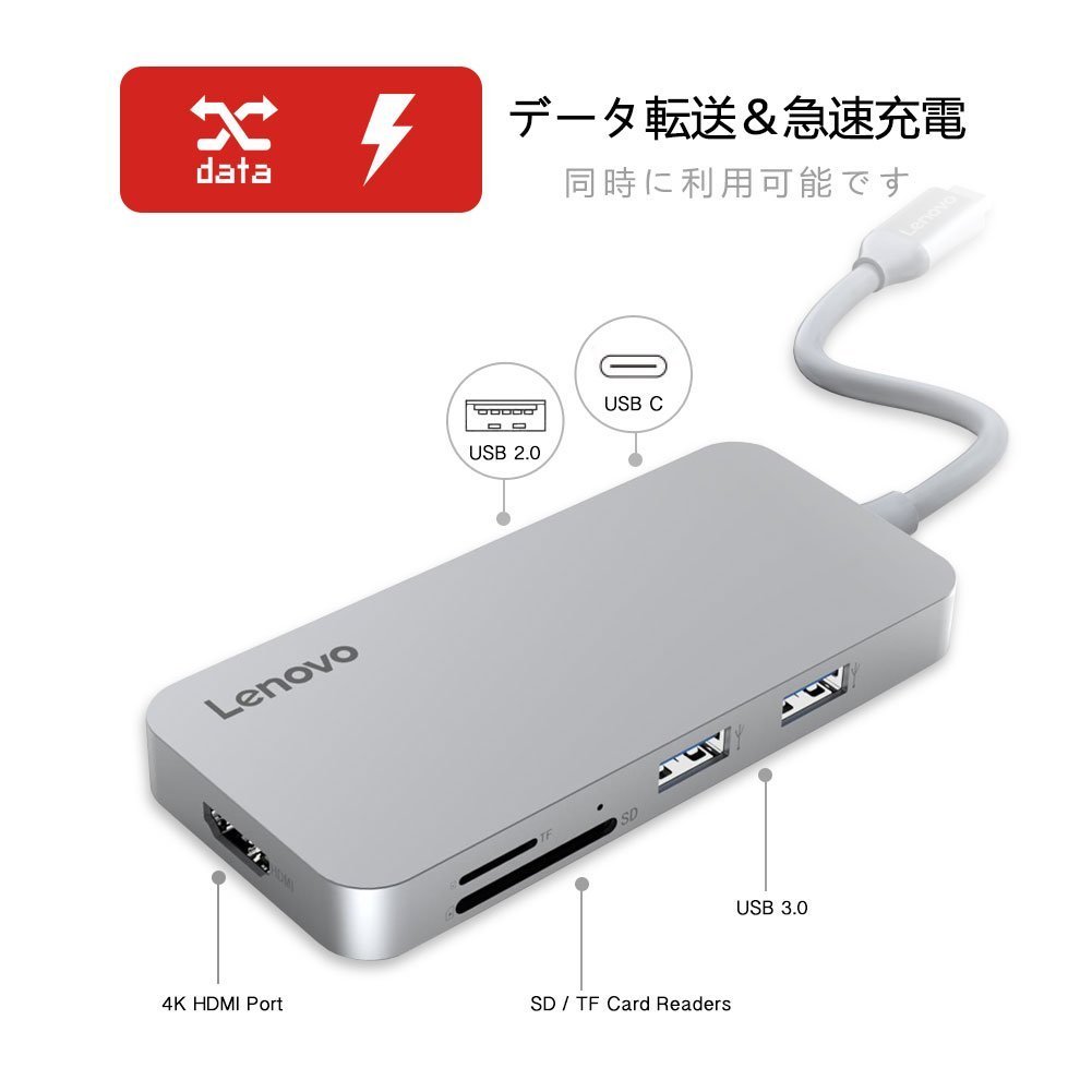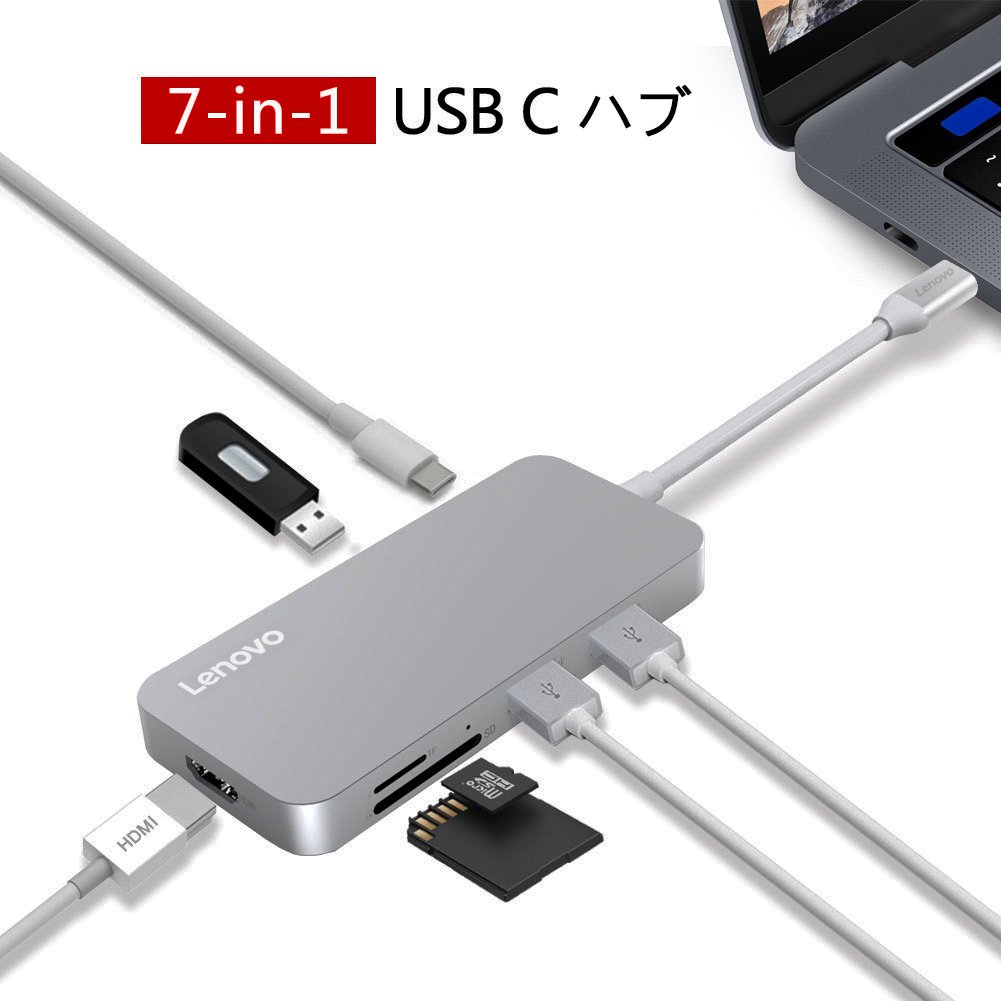 Through the Lenovo Type-C hub, various external equipments are connected to MacBook or Type-C laptop: USB-CX1, USB 3.0X2, USB2.0X1, HDMI output X1, TF card reader X1, SD card reader X1.