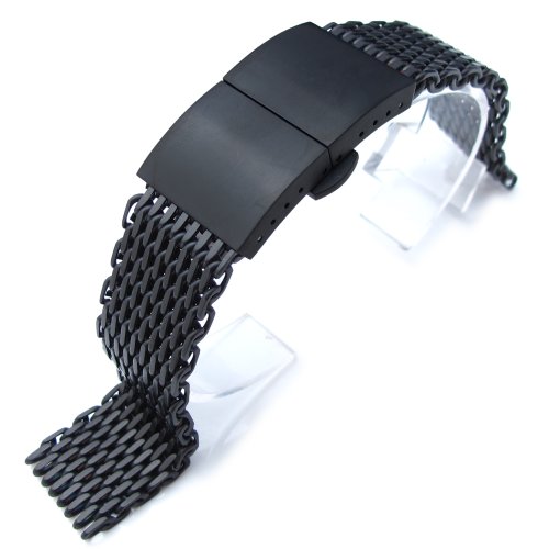 -. Title : 20mm Ploprof 316 SS Wire "SHARK" Mesh Milanese Watch Band, Dome Deployant, Black, BB
