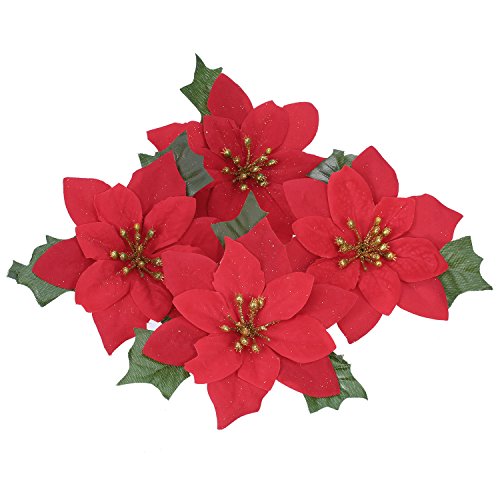 - Quantity: package comes with 10 packs red poinsettia flowers, can match with other Christmas ornaments to light up your Christmas party