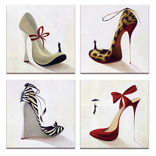 -. Title : Fashion Shoes Pictures Canvas Art,High Heel,Innovational Protect Animals Series Design,Shoe Shop Wall Decor,12x12inchesx4pcs, Ready to Hang on Canvas Painting P.R.Ints Artwork
