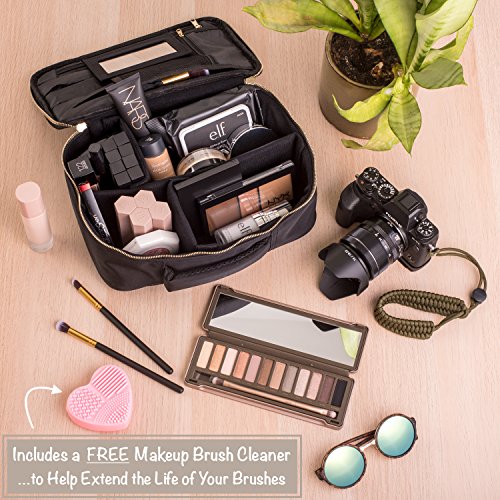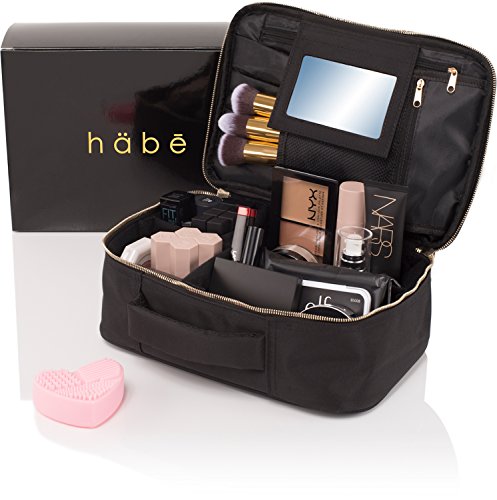 habe Travel Makeup Bag with Mirror - Fits ALL Your Makeup! Make Up Bag Organizer Train Case for Women - Storage Capacity of 3 Cosmetic Bags / Make Up Bags...