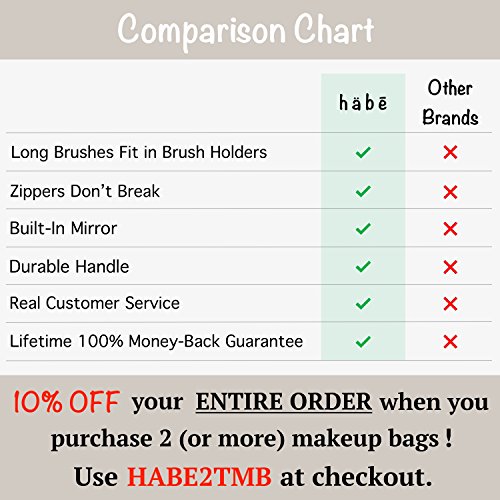 - [LONG BRUSHES FIT, ZIPPERS WON'T BREAK] - While the other guys may be cheaper, we're currently the ONLY brand that can make this claim AND offer a Lifetime 100% Money-Back Guarantee to back it up. Our reviews speak for themselves! Click “Add to Cart” now to see why thousands of satisfied customers LOVE our makeup bag.