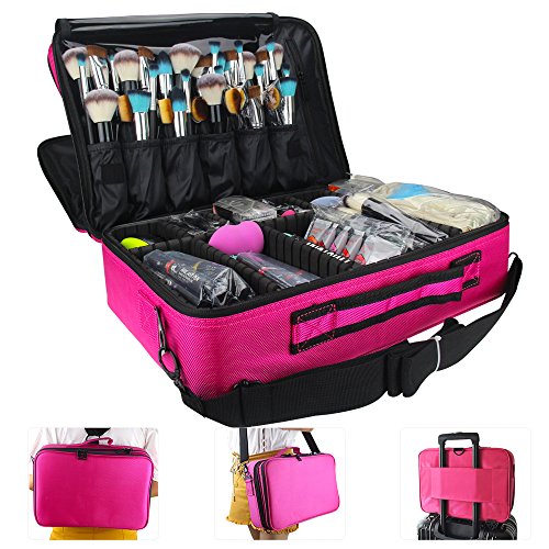 MLMSY Large Capacity Makeup Case 3 Layers Cosmetic Organizer Brush Bag Makeup Train Case Makeup Artist Box for Hair Curler Hair Straightener Brush Set...