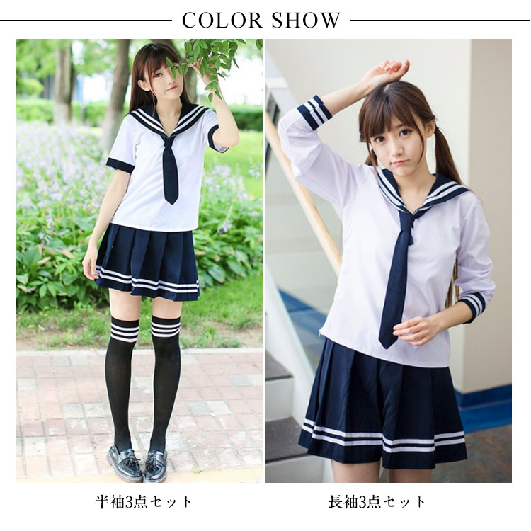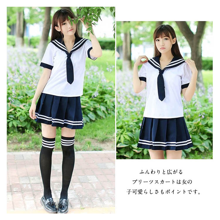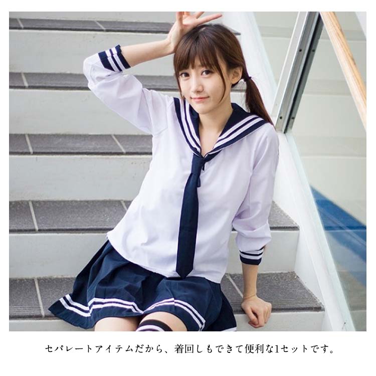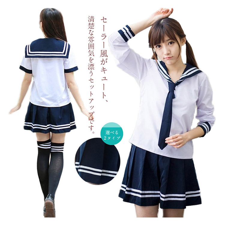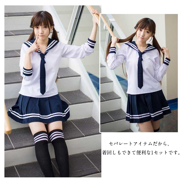 | セーラー風がキュート、清楚な雰囲気を漂うセットアップです。セーラー衿、ネクタイや配色デザインなどがアクセントになっています。ふんわりと広がるプリーツスカートは女の子可愛らしさもポイントです。セパレートアイテムだから、着回しもできて便利な1セットです。 | |