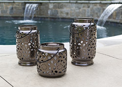 -. Feature : Choice of size / Ceramic with metal handle / Choice of a range of colors / Cut-out medallion pattern / For use indoors or out