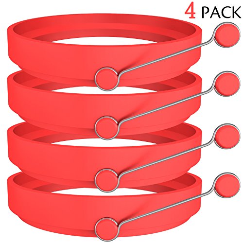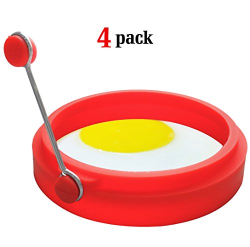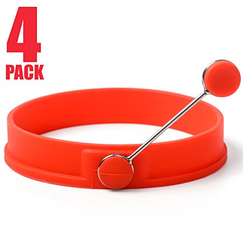 About the product - Heat resistance: - 40 to 446F/230 degree celsius. - High grade stainless steel handle with Premium quality food grade stay-cool silicone pad, 100% BPA, phthalate and lead free and FDA approved. - 4 inches diameter mold, high quality durable and soft silicone, nonstick and no scratched pans. - Perfect for breakfast sandwiches, small omelettes, desserts, benedict eggs, egg muffins, burger patties, poached eggs and more. - Reusable, practical and easy to clean. - Use on grill, pan BBQ, anything.