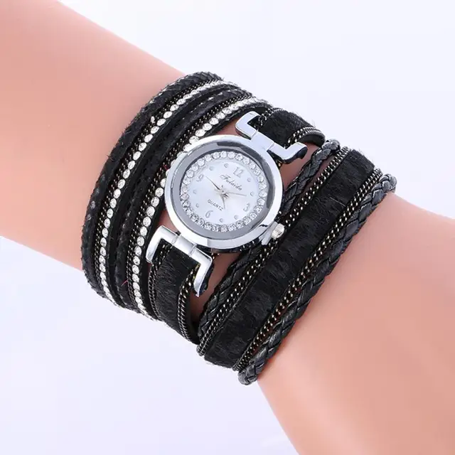 | [해외] 랩 여자 팔찌 시계 패션 직조 가죽 밴드 레이디 여성 석영 손목 시계 창조적 인 여성의 시계 July28 |