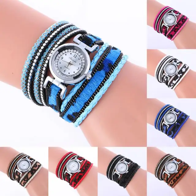상품 내용 랩 패션 직조 가죽 팔찌 시계 레이디 여성 석영 손목 시계 특징: