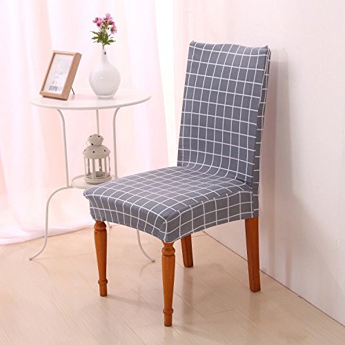 -. Title : Stretch Removable Washable Short Dining Chair Cover Protector Seat Slipcover - Checked Grey