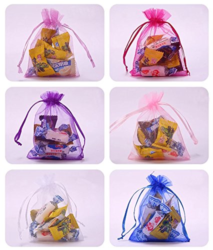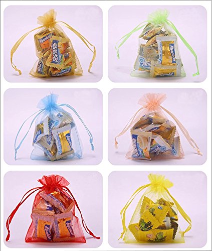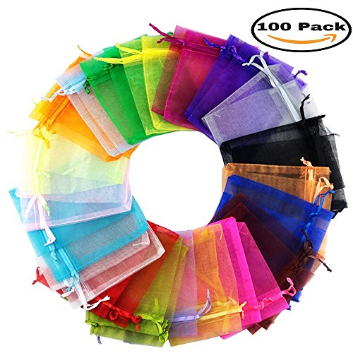 Mydio 100pcs 2.7" x 3.5" Mixed Colors Organza Gift Bags,Drawstring Organza Jewelry Favor Pouches Bags