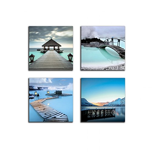 -. Title : NAN Wind 4 Panels Modern Giclee Canvas P.R.Ints Ocean Beach Resorts and Bridge Winter Lake Wall Art Nature Landscape Wall Decor Paintings on Canvas Framed Ready to Hang for Home Decor Bedroom Decor