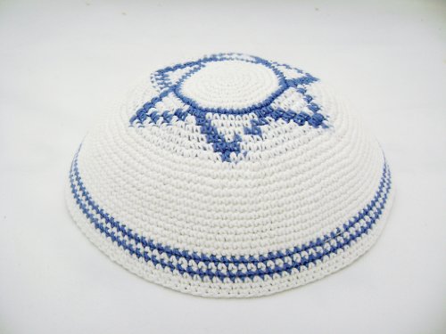 White Star Of David Crochet Knitted Kippah 17 CM
