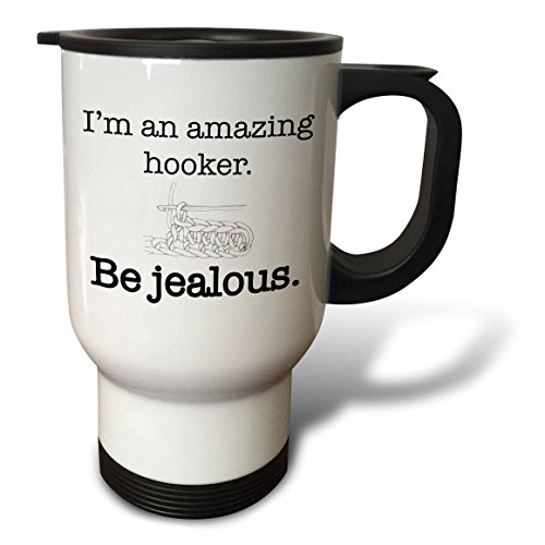 3dRose I'm an Amazing Hooker be Jealous Crochet Yarn Travel Mug, 14-Ounce