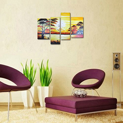 - Title : Oil Paintings Handpainted Art Landscape on Canvas Sunrise Picture for Living Room Decor Stretched 4 PCS/set