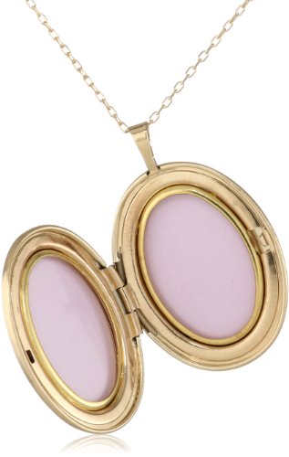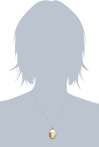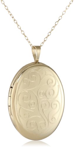 Sterling silver necklace in gold-plated finish featuring oval locket pendant with decorative engraving at front