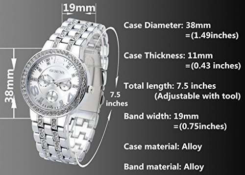 -. Binding : Watch -. Brand : Top Plaza -. Department : Womens -. Feature : Size: 7.5'' length adjustabl(Band could be removed) Case Dia: 1.5'' Case Thickness: 0.4'' Band wide: 0.7'' / Material: Alloy / Not water resistant, please don't get wet. / Classic and elegant design, perfect for dress occasions. / Each order comes with a grey velet bag P.R.Inted Top plaza. -. Label : Top Plaza -. Manufacturer : Top Plaza -. Model : ATPUS62116 -. MPN : ATPUS62116 -. PartNumber : ATPUS62116 -. ProductGroup : Watch -. ProductTypeName : WATCH -. Publisher : Top Plaza -. Studio : Top Plaza -. Title : Top Plaza Women Silver Tone Metal Bracelet Watch Rhinestone Decorated Case 4,8,12 Numeral Dial Analog Quartz Wrist Watch