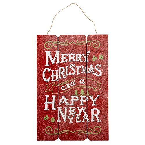 - Merry Christmas and a Happy New Year Measurements: 17.75”L x 12”W with 6”L hange Made of wood. 2 D-shaped hooks and top rope for hanging