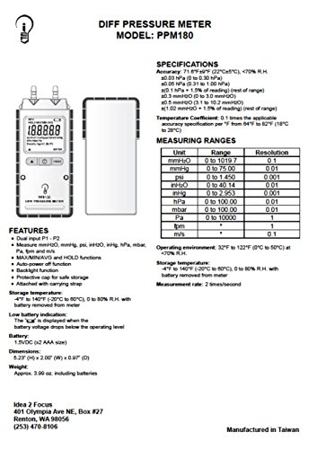 Idea2Focus Portable Differential Pressure Meter PPR180